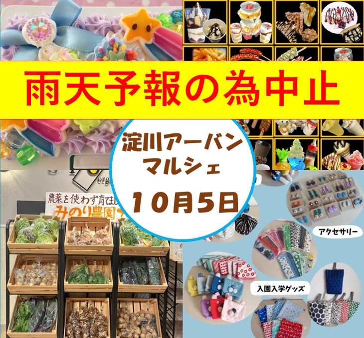 お知らせ 月別お知らせ一覧 2025年10月のお知らせ 2025年9月のお知らせ 2025年6月のお知らせ 2025年5月のお知らせ 2025年4月のお知らせ バックナンバー 2024年のお知らせ 2023年のお知らせ 2022年のお知らせ 2021年のお知らせ 2020年のお知らせ 2019年のお知らせ 2018年のお知らせ 地区で絞り込む 枚方地区 背割堤地区 西中島地区 西中島地区 2025/10/04(土)【開催中止】淀川アーバンマルシェブース発表(10/5開催分) 明日の淀川アーバンマルシェは、全日の10月4日9時現在、当日10月5日の開催時間中の降水確率が50%を超えている為、止むをえず中止させていただきます。 誠に残念ですが、ご理解ご協力をお願いいたします。