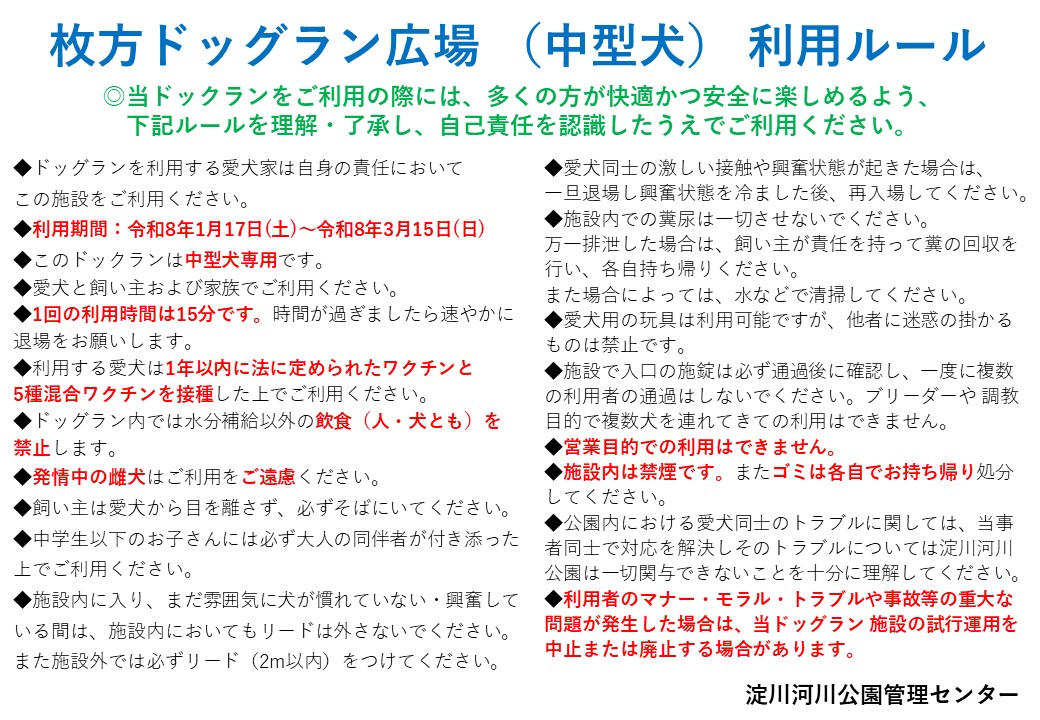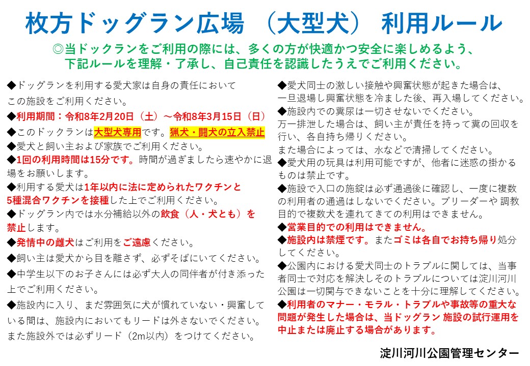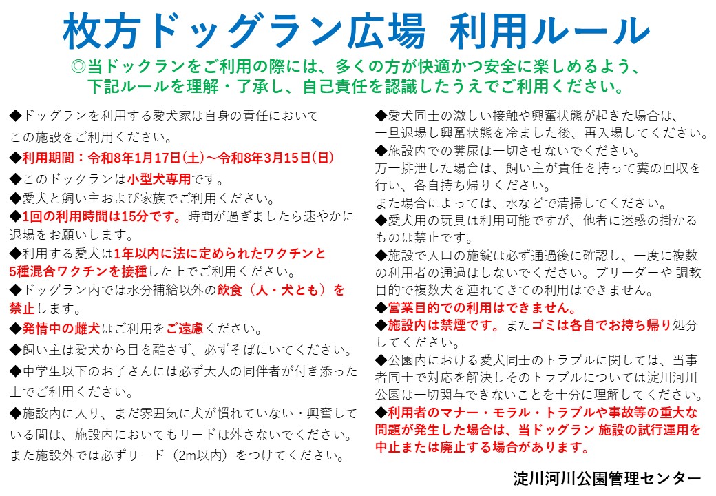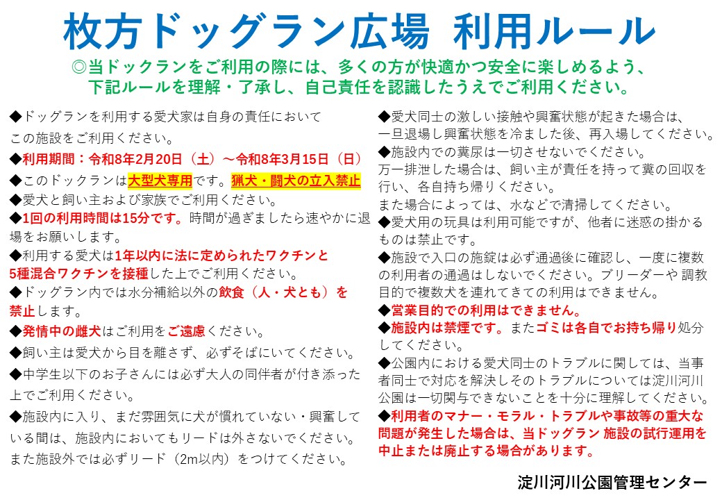 2026/2/21(土)【期間延長決定!】よどがわドッグラン広場開設について(枚方地区)
