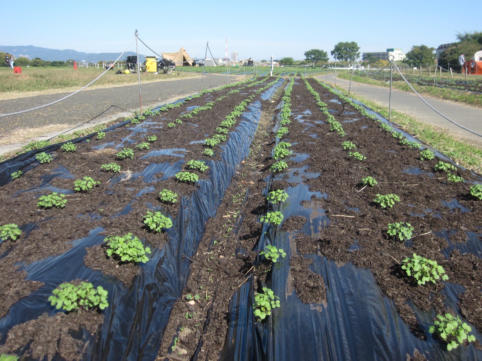 コスモスの花壇跡地に、ナノハナを播種しました。