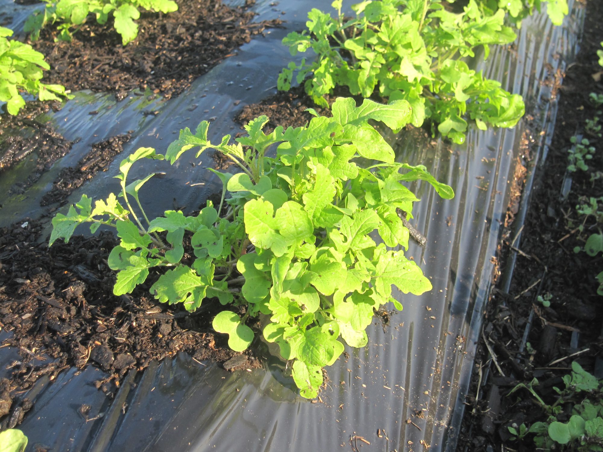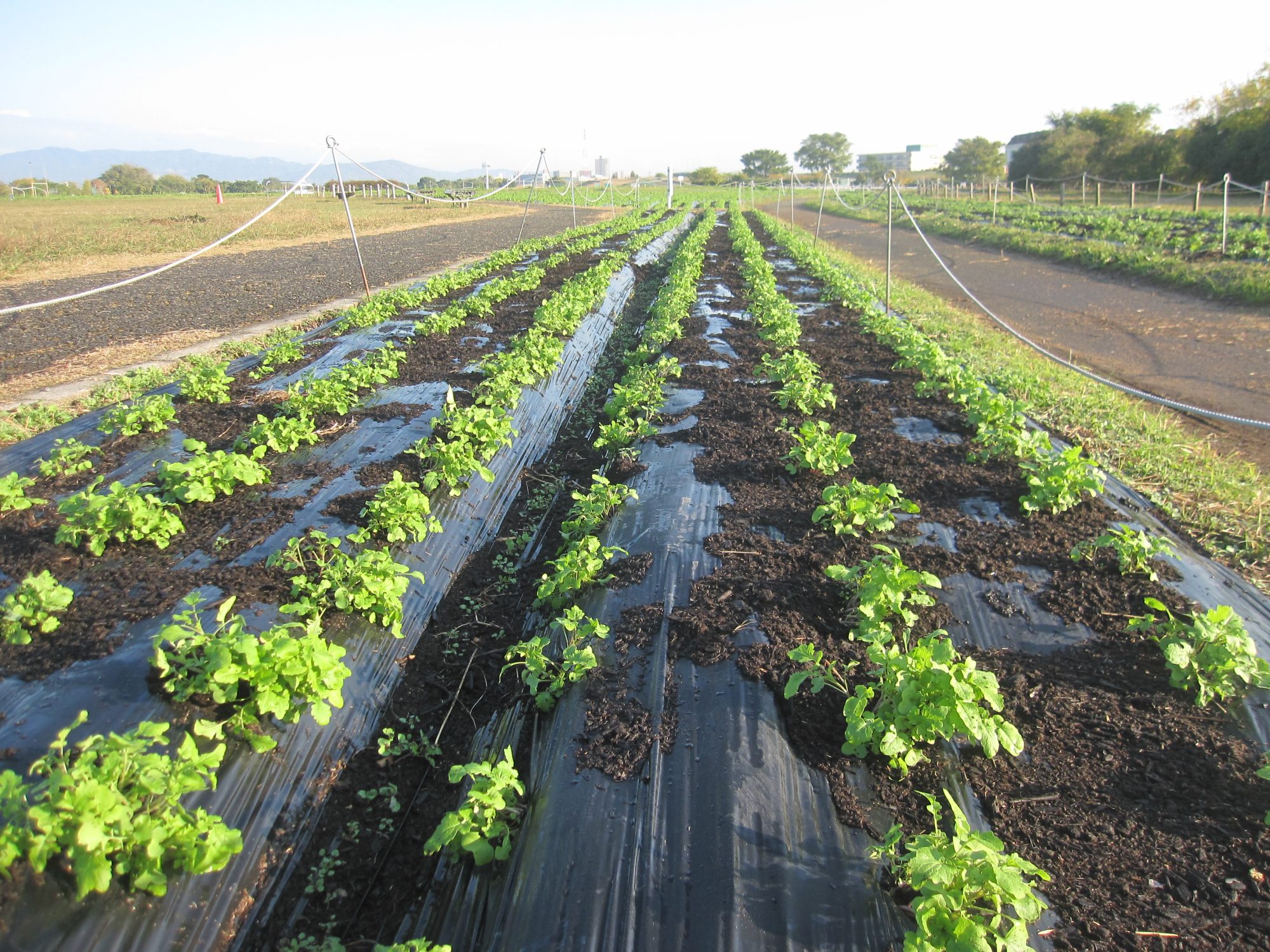 こちらは播種から3週間位の様子です。前の写真では双子葉の確認ができますがもう15㎝程度に成長していますので、双子葉植物と判別はできません。