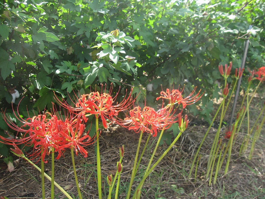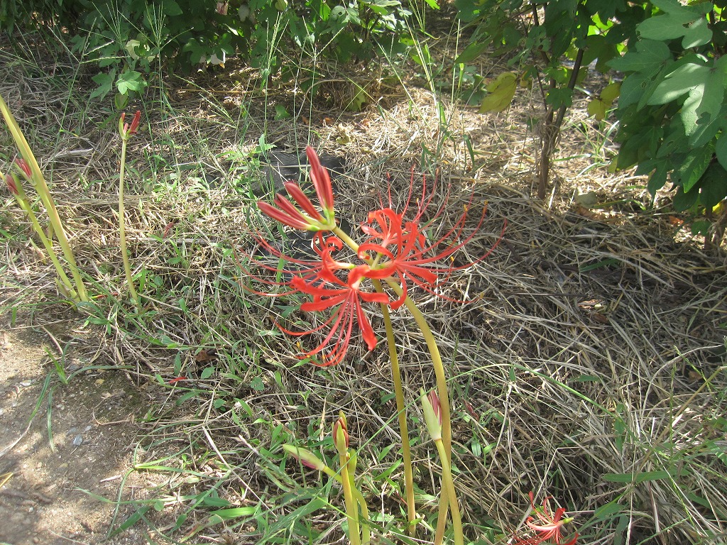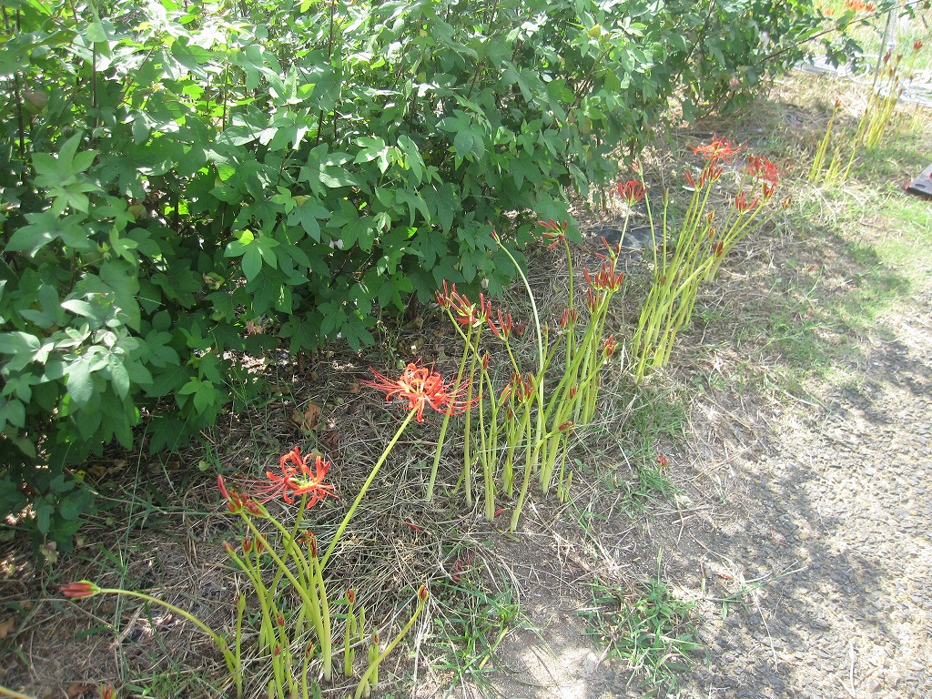 太間地区のワタ花壇際に少しだけあります、真っ赤なヒガンバナが咲き始めました。