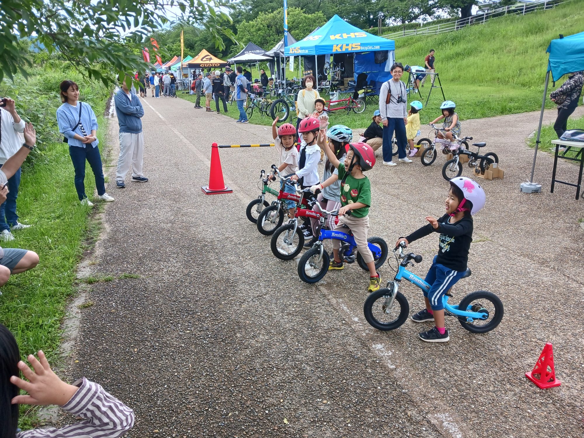 最初はペダルなしの自転車でバランスの取り方を練習して、その後ペダル有り自転車で実践練習をしてきます。