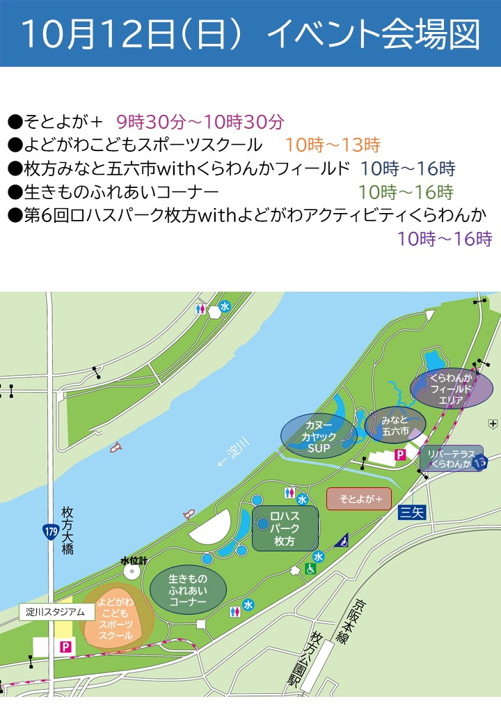 10月11日(土)~13日(月・祝)の3連休、枚方地区は、『みなと五六市withくらわんかフィールド』や『第6回ロハスパーク枚方withよどがわアクティビティくらわんか』などが開催されイベント盛りだくさん!!