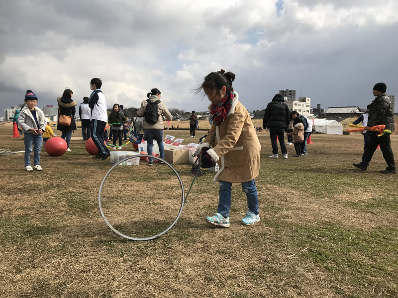 和凧づくり体験や凧揚げ大会といった凧揚げと、フラフープ、コマ回し、輪回し体験など昔あそび体験を中心としたHotな冬あそびの2つのあそびを体験できます。